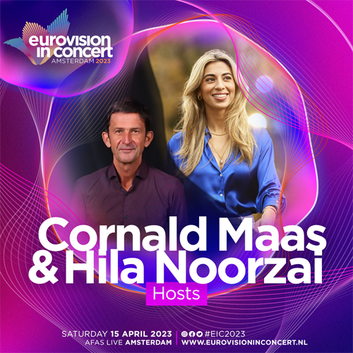 Updated on05/12/202221/12/2022 CategoriesNieuws De Hosts Met trots presenteren wij de hosts van Eurovision In Concert 2023: Cornald Maas & Hila Noorzai